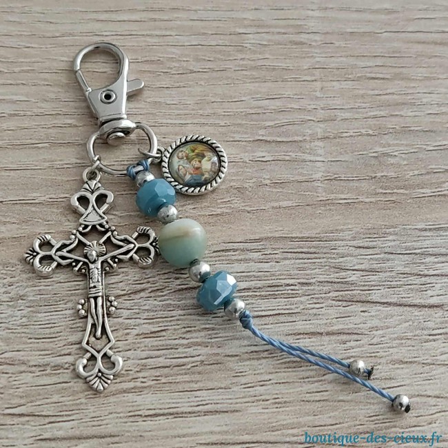 Bijoux de sac / Porte-clés en pierre naturelle et divers symboles religieux Ces accessoires seront bénis par un prêtre. |