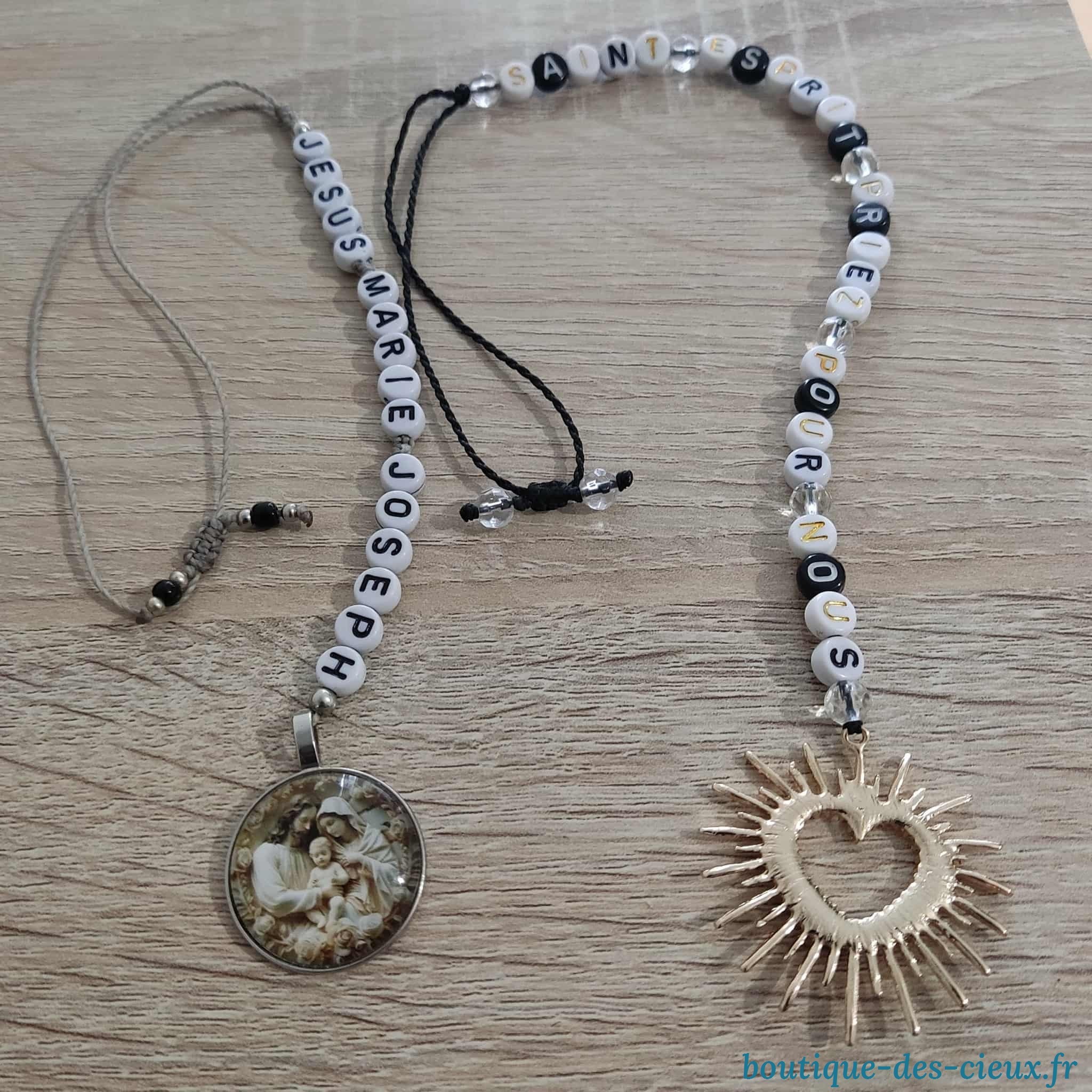 Décoration pour rétroviseur, Sainte Famille (Jésus, Marie, Joseph) ou Coeur De Jésus Rayonnant (Saint Esprit priez pour nous) au choix Ces bijoux seront bénis par un prêtre. |