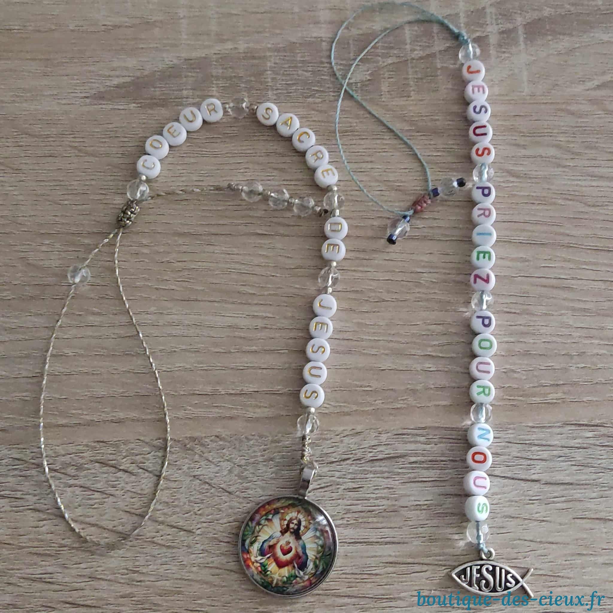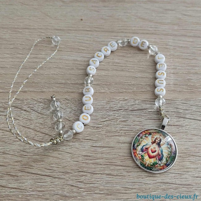 Décoration pour rétroviseur, médaillon Jésus (Coeur Sacré de Jésus) ou breloque Jésus / poisson (Jésus priez pour nous) au choix Ces bijoux seront bénis par un prêtre. |
