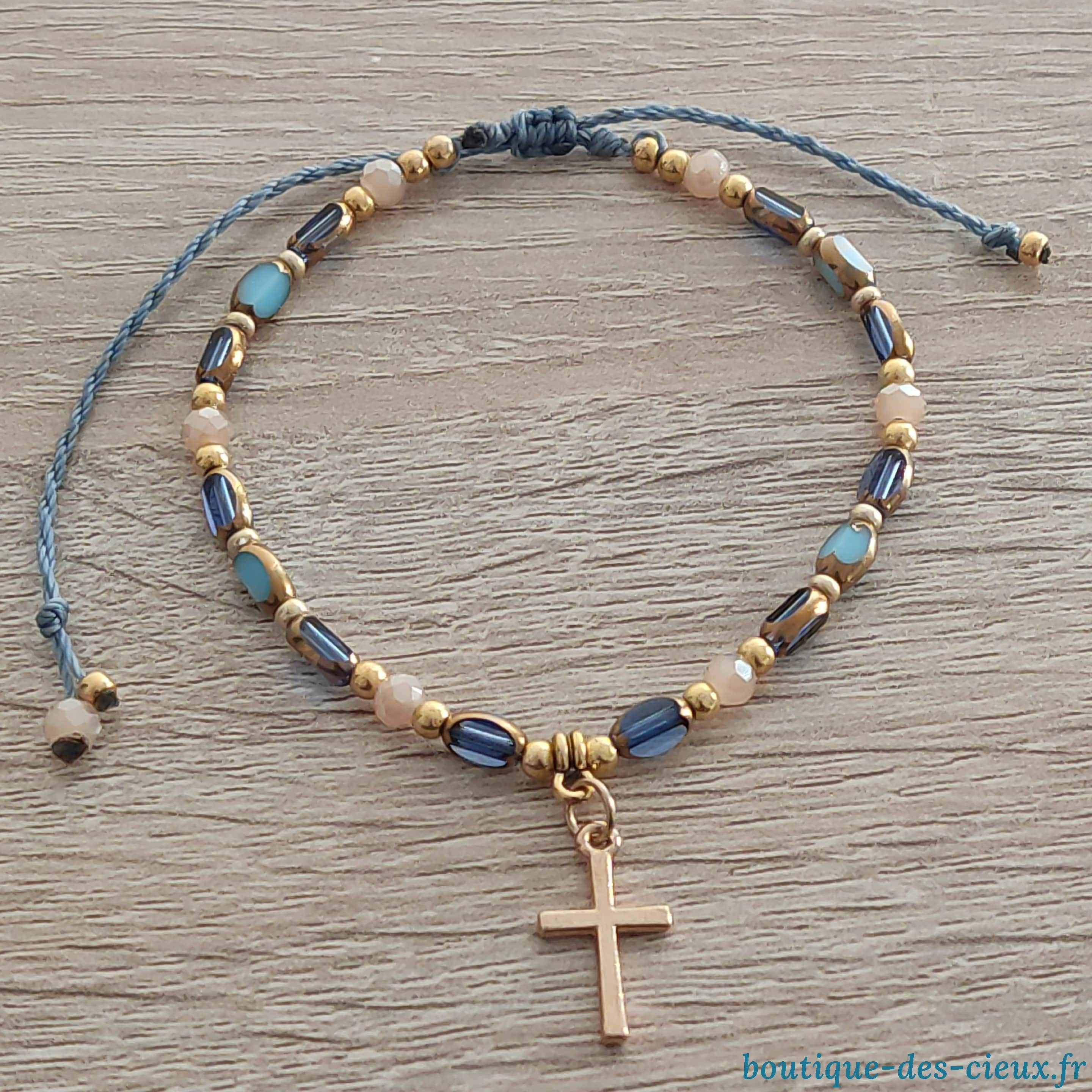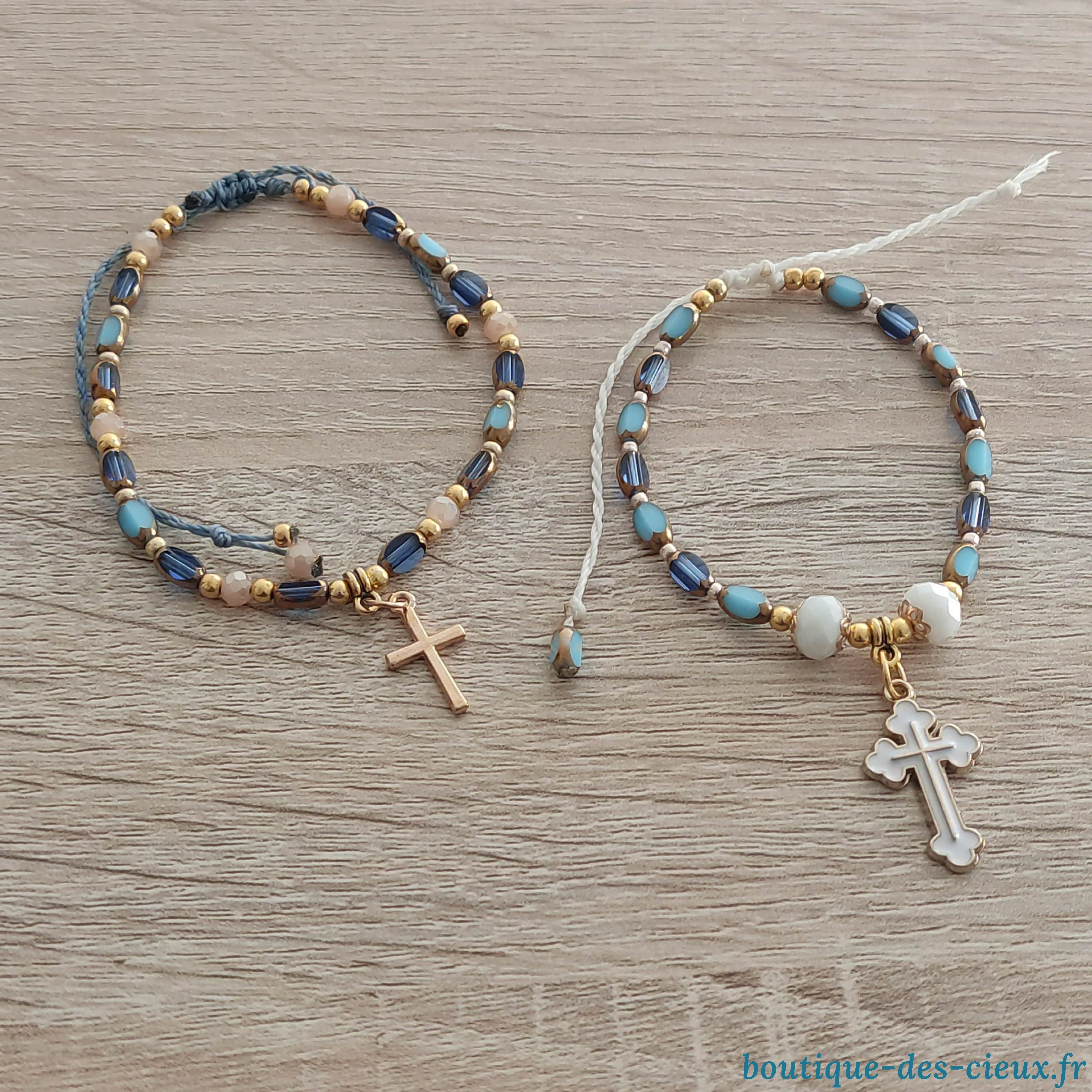 Bracelets pour femmes composés de perles en verre, perles de rocailles et pièces en métal dorées. Entièrement montés à la main sur fil polyester avec fermoir glissant, ils s'adaptent à tous les poignets. Bijoux bénis par un prêtre. |
