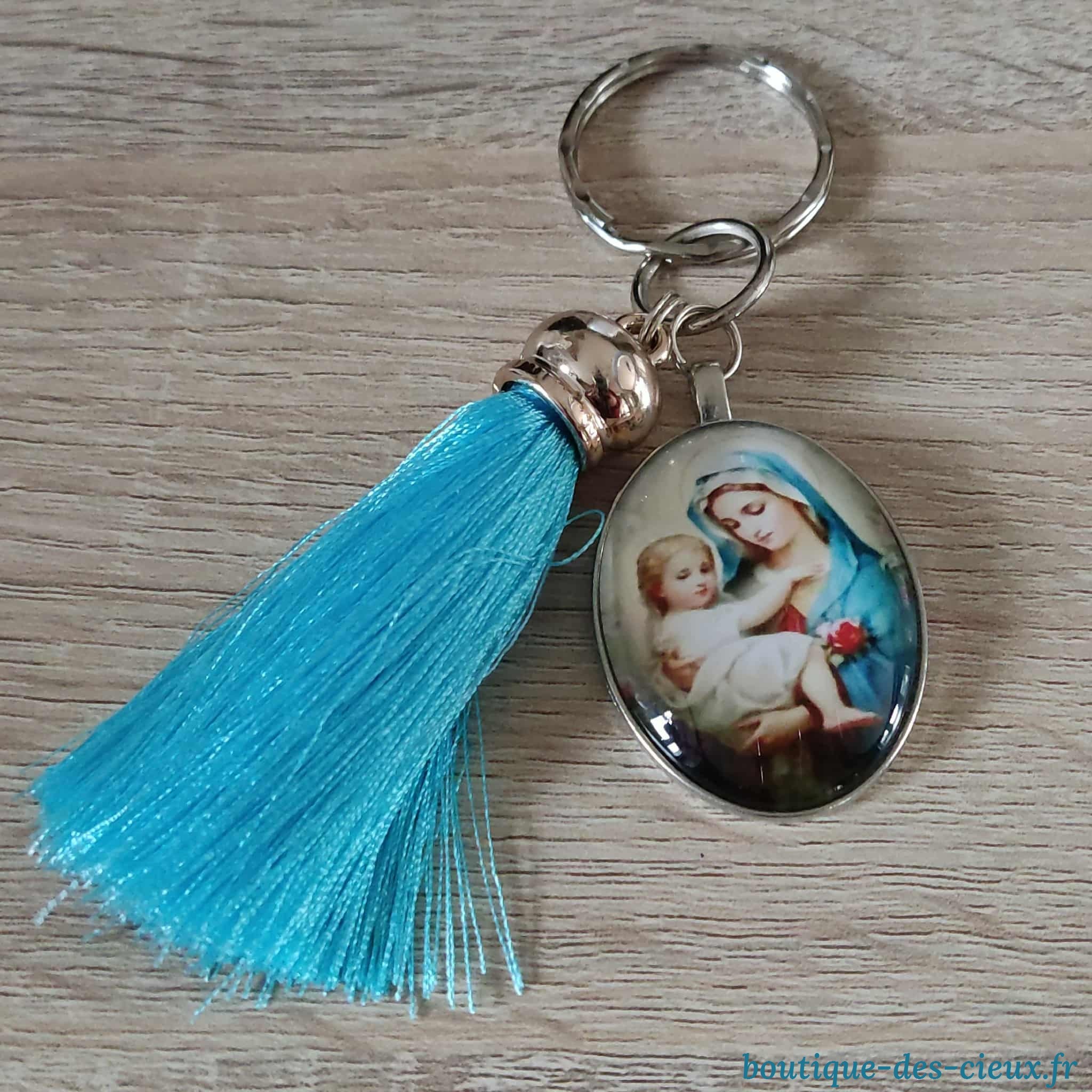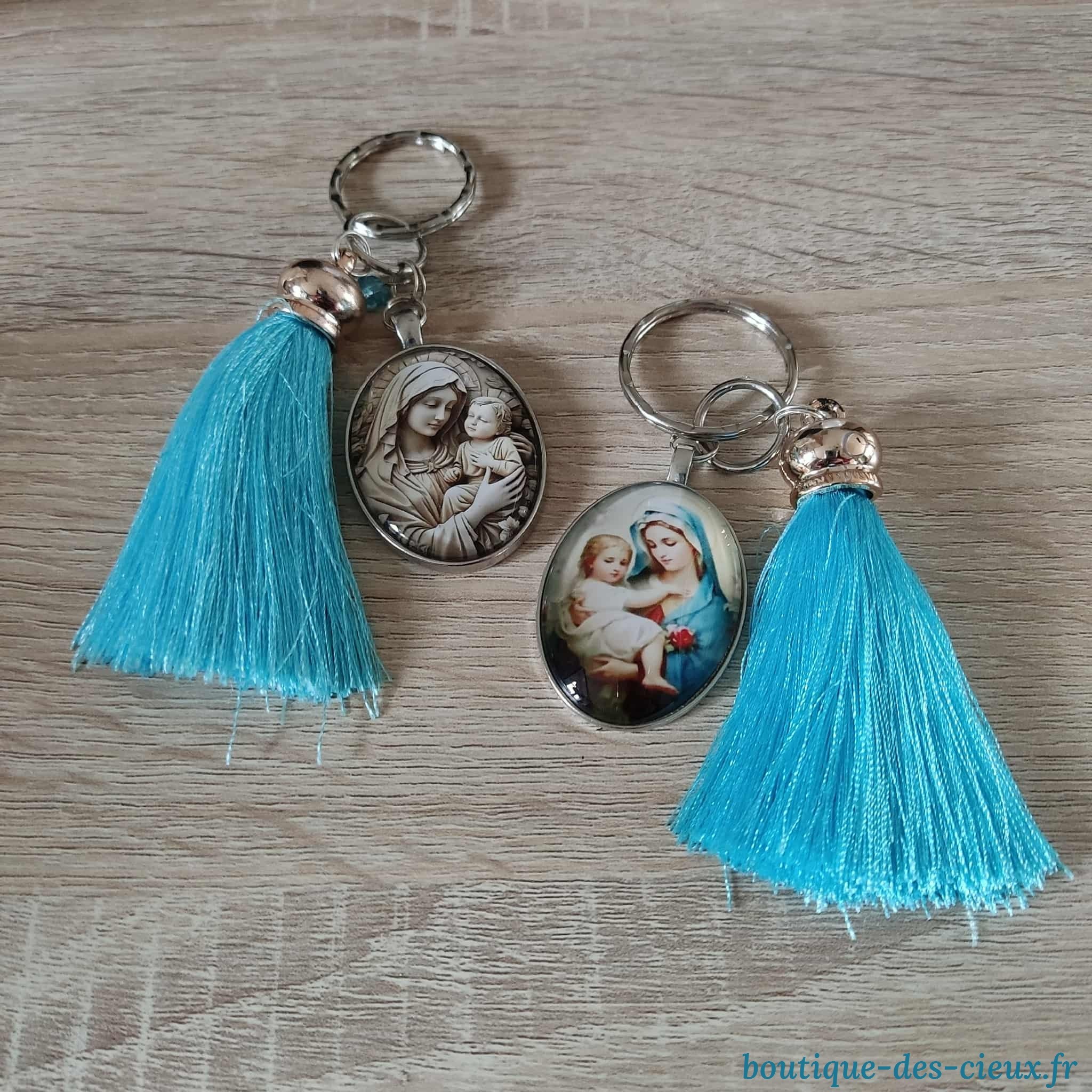 Porte-clés chrétiens grands cabochons ovales Vierge Marie et l'Enfant Jésus. Deux modèles au choix Ces porte-clés seront bénis par un prêtre. |