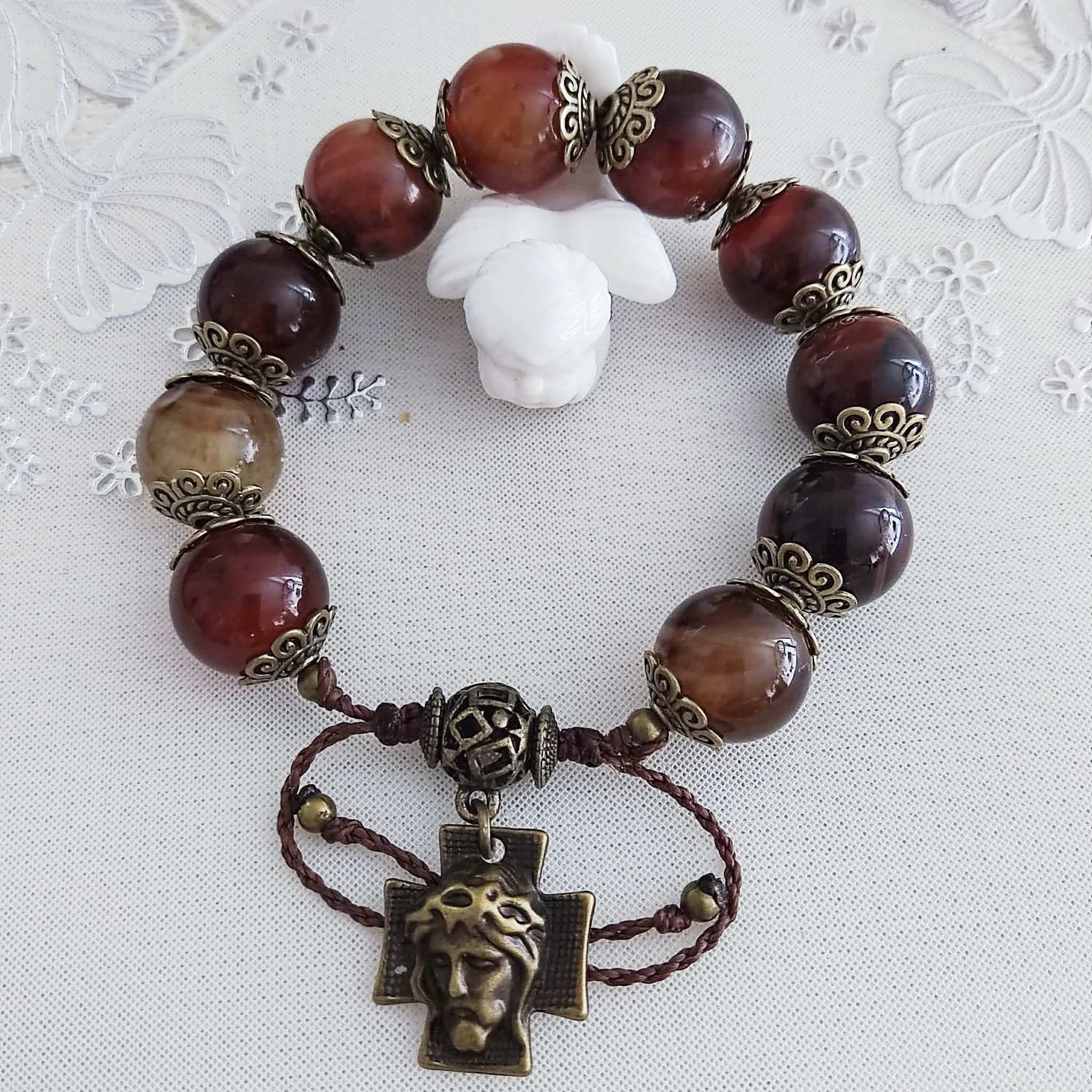 Dizainiers pour femmes, composés de grosses perles d'agate ou d'amazonite (au choix). Idéal pour poignet forts par la grosseur des perles. Véritable bijoux modernes, ces dizainiers ont été créés pour avoir l'apparence de bracelets ordinaires tout en respectant les étapes de la prière. Vous souhaitez prier le dizainier, mais ne savez pas comment procéder : rendez vous dans les pages à votre disposition. Vous y trouverez des explications et un livret complet téléchargeable en format pdf vous y est offert. |