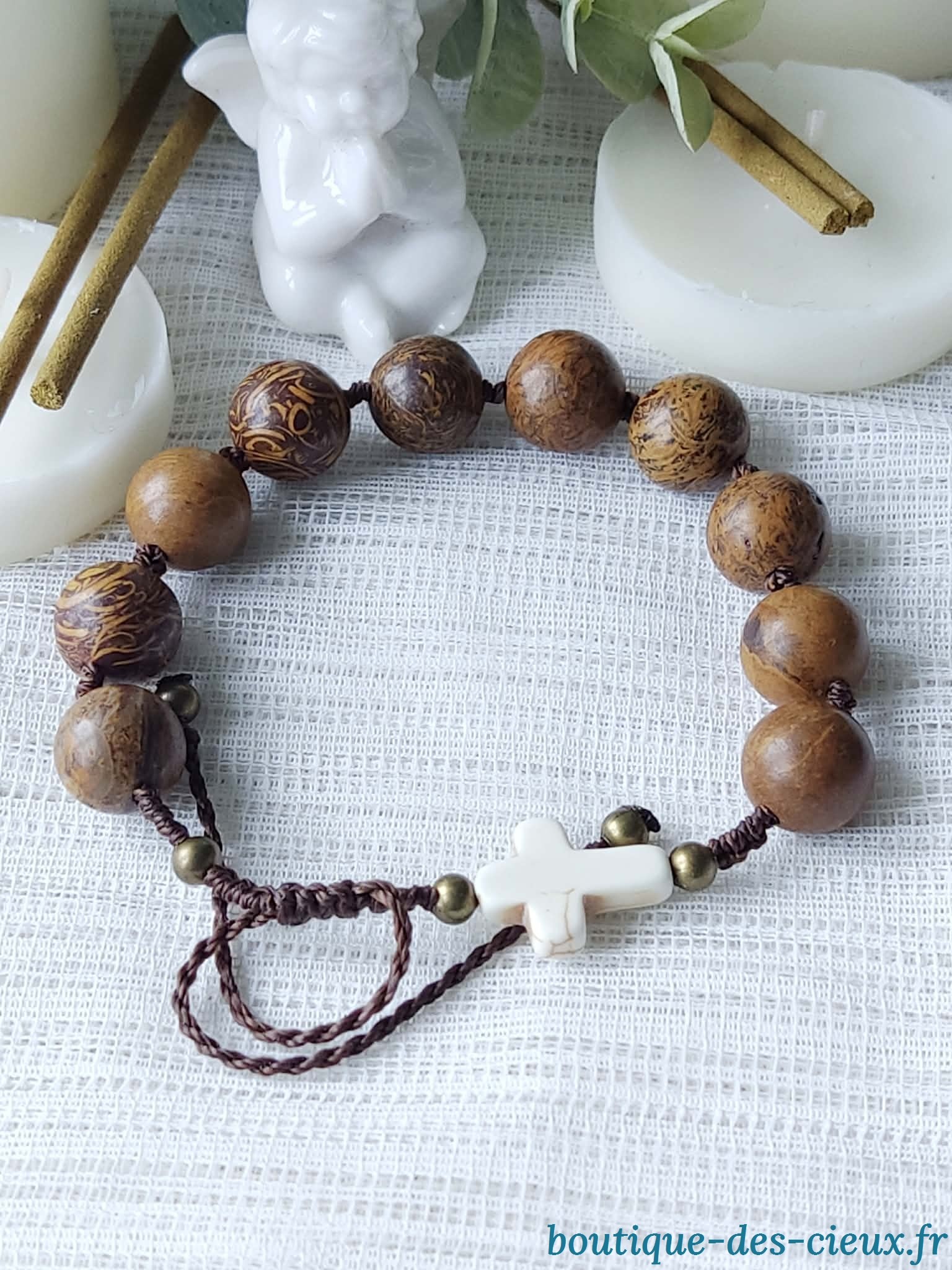 Bracelet dizainier en jaspe éléphant naturel - Prière catholique