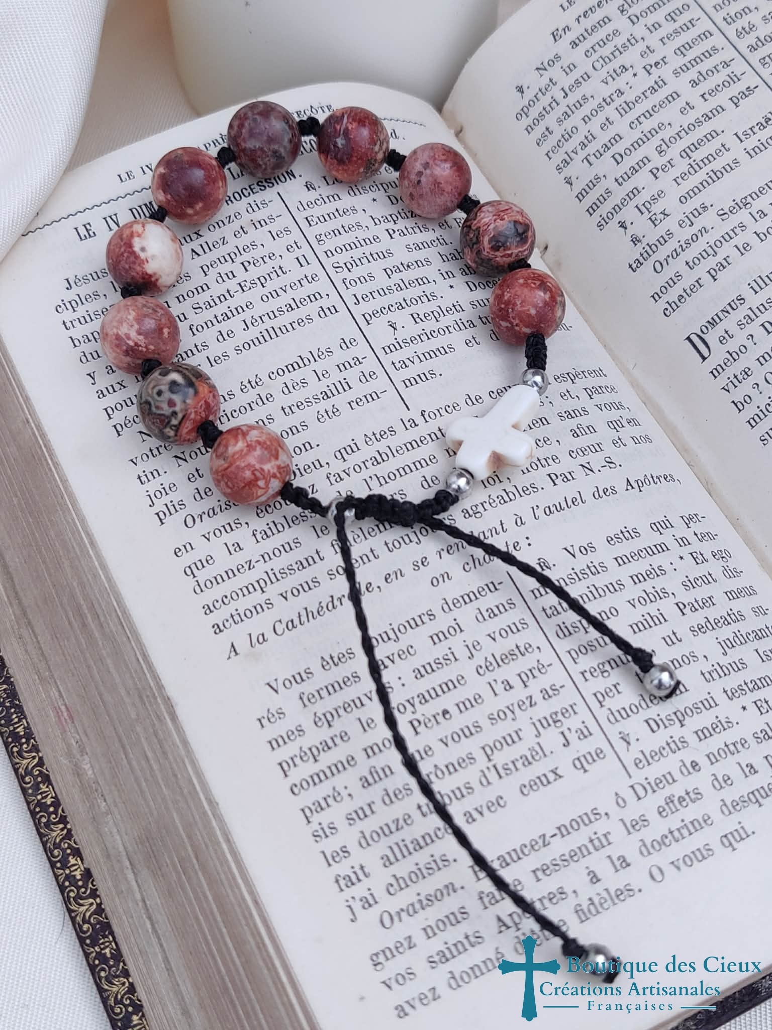 Bracelet dizainier en jaspe léopard - Bijou de prière chrétienne