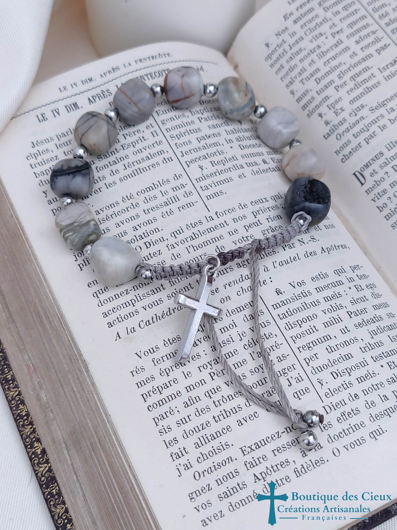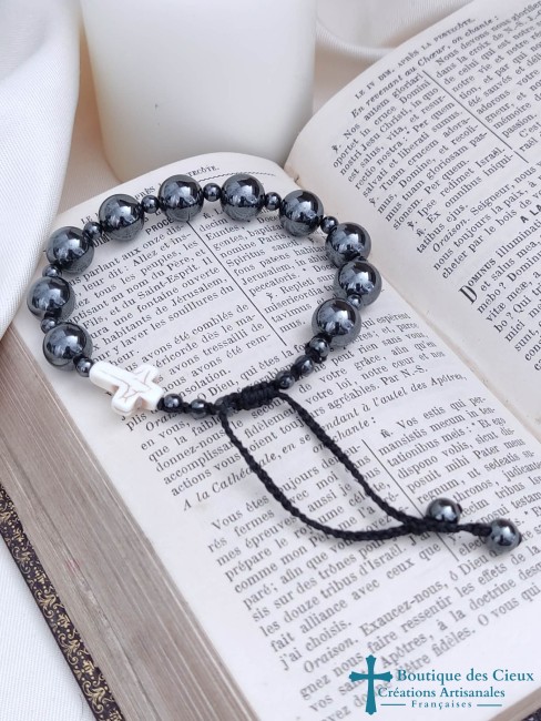 Bracelet dizainier pour hommes en jaspe  (stabilise l'humeur) Véritable bijou , ce dizainier a été créé pour avoir l'apparence d'un bracelet ordinaire tout en respectant le déroulé de prière (10 grains et une croix)