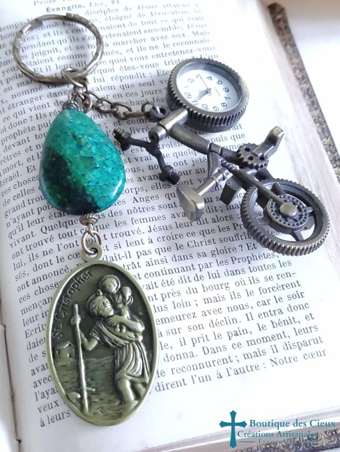 Automobilistes, motards, cyclistes, pietons, ce portes clés Saint Christophe artisanal, (protecteur des voyageurs), est faits pour vous ou parfaits pour offrir. Ce porte-clés sera béni par un prêtre. |