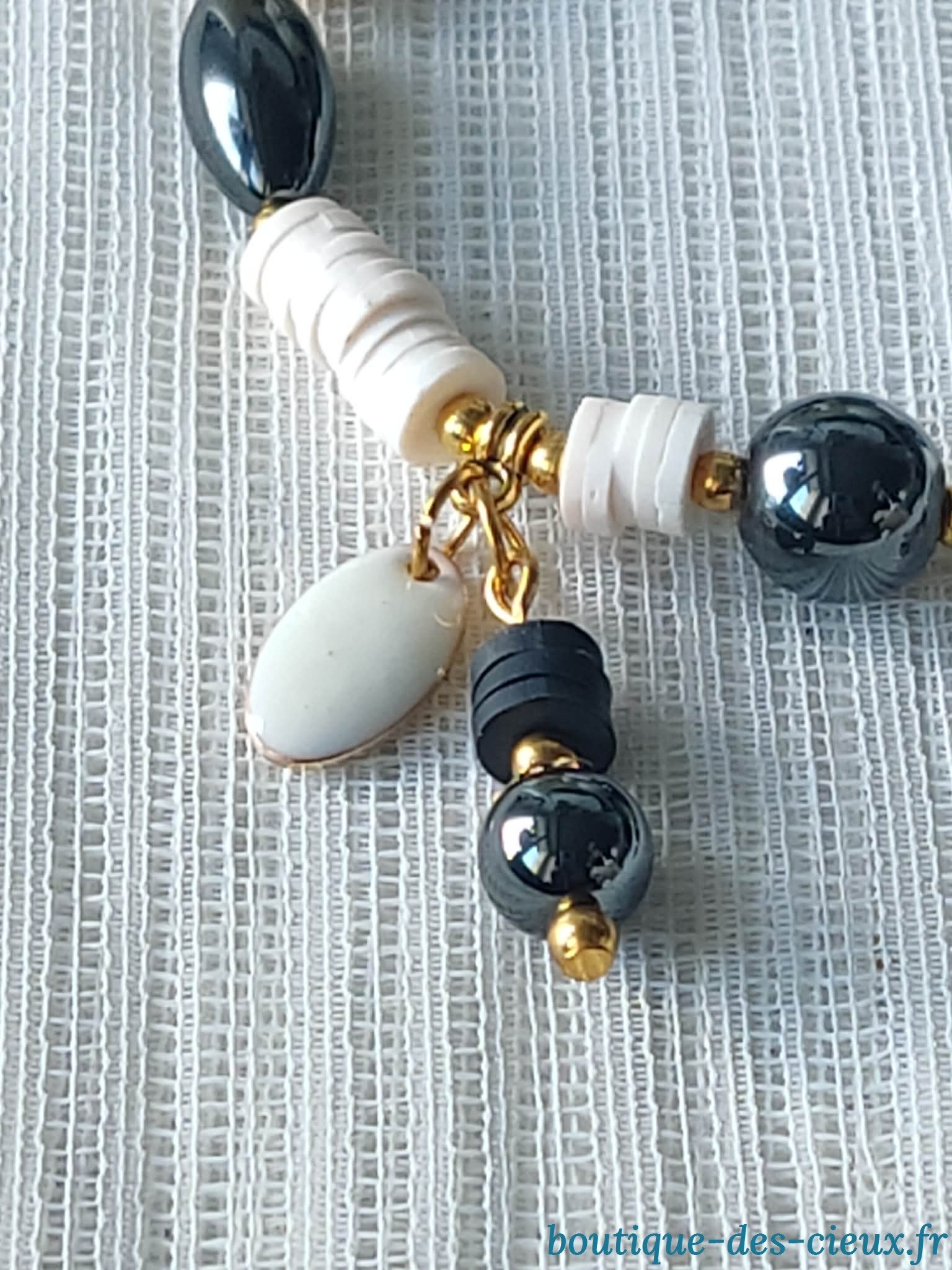 * Breloque émaillée blanche 18 mm et pampilles fait main en hématite