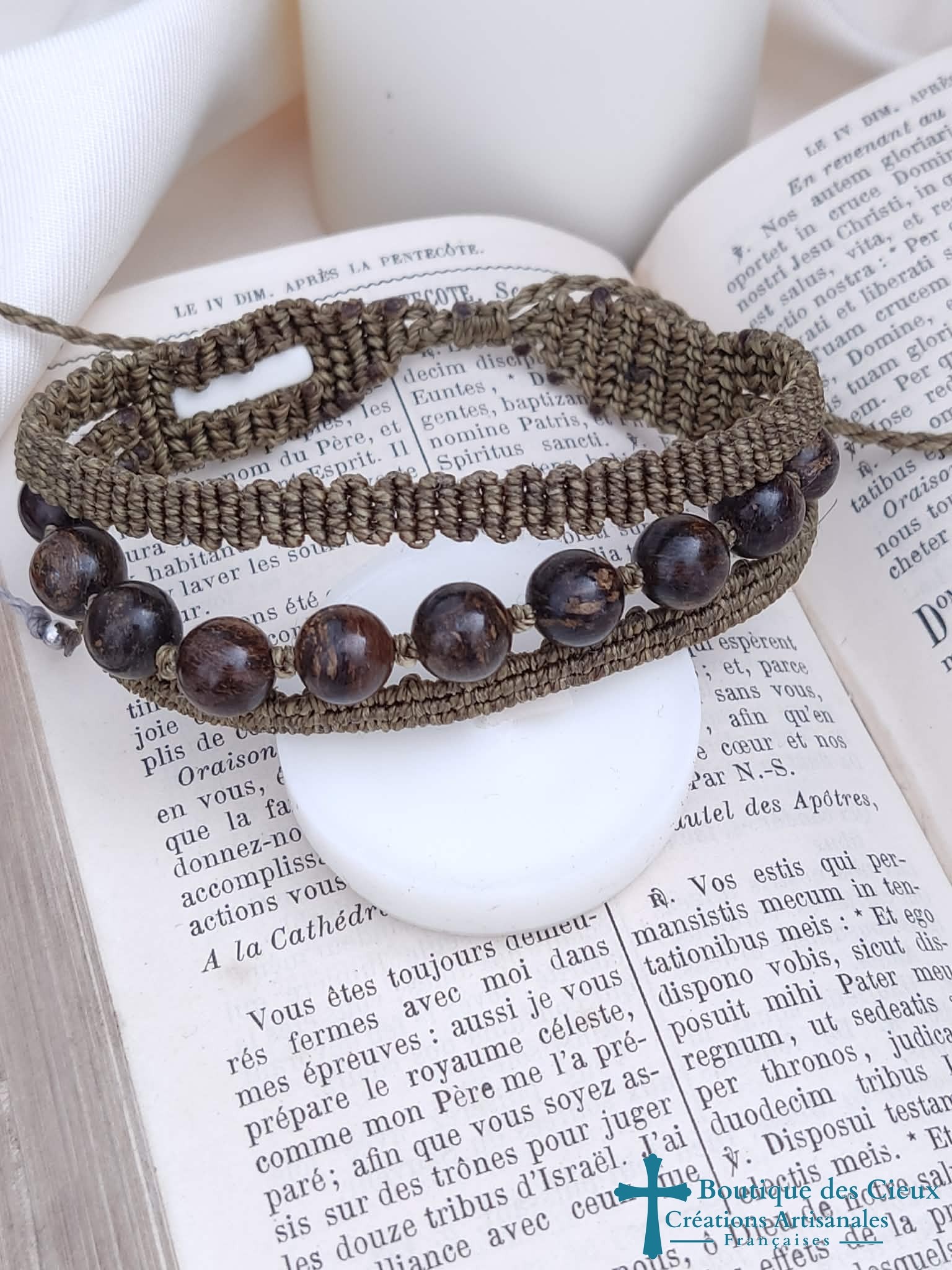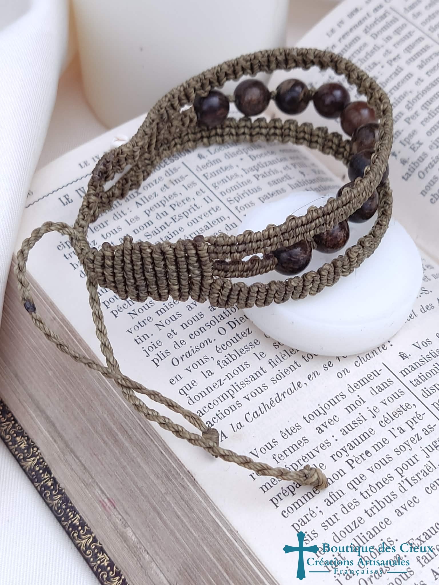 Bracelet dizainier pour homme en bronzite Tissage macramé
