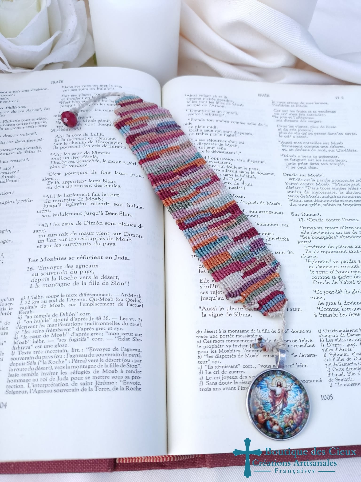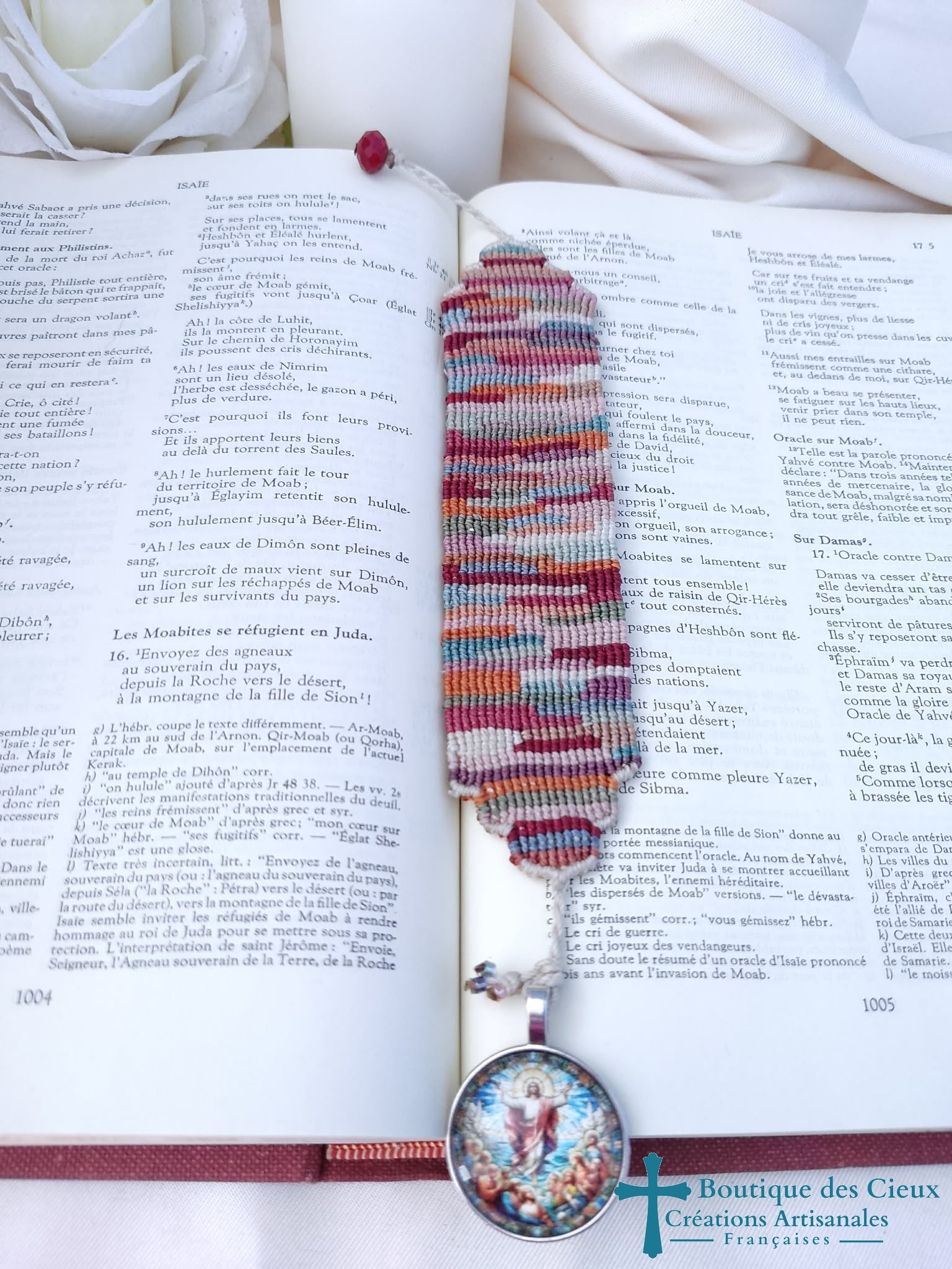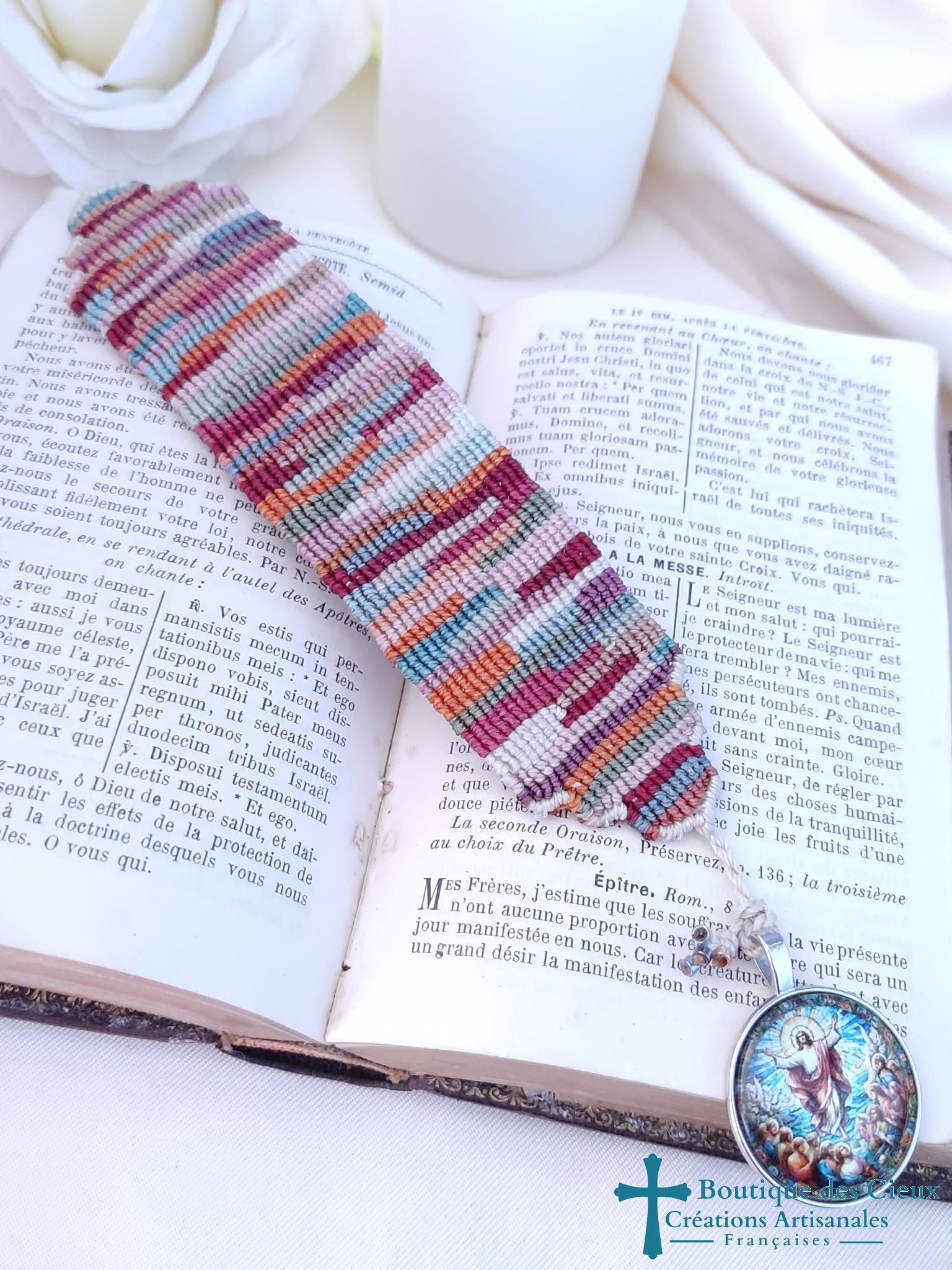 - Montage et tissage à la main : fil polyester ciré 0.75 mm