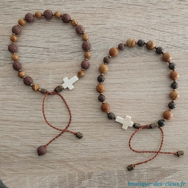 Prière Chrétienne Dizainier pour homme Pierre de lave Oeil de tigre