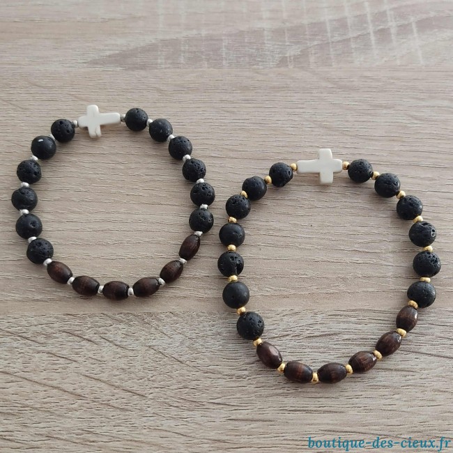 Bracelets religieux howlite Croix Bois pour Homme ou femme