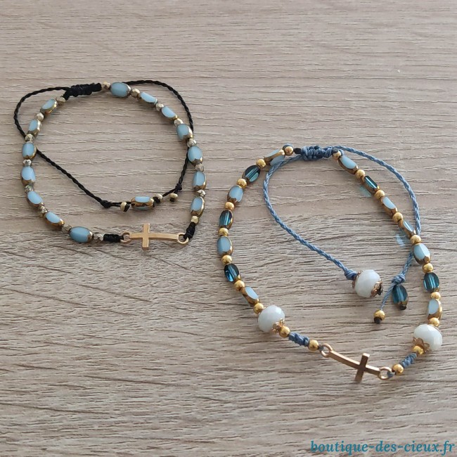 Connecteur croix dorée sur bracelet macramé 3 couleurs au choix