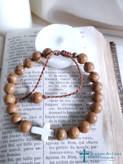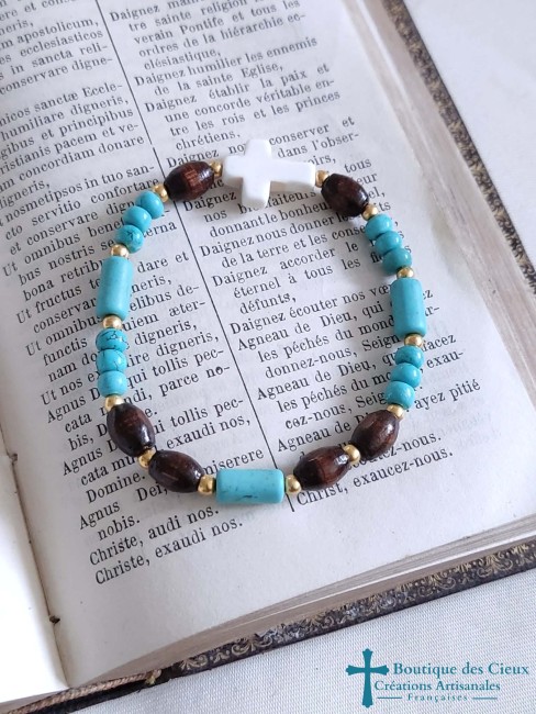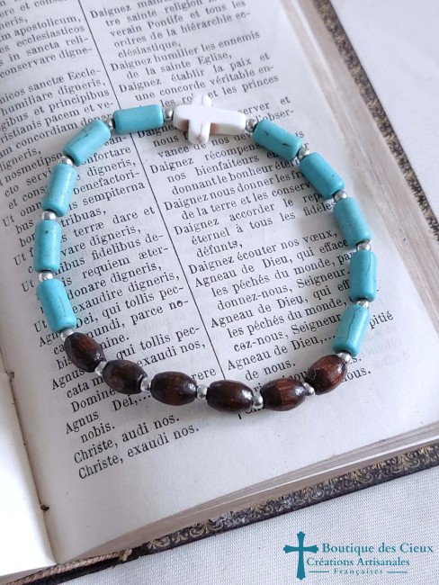 Bracelet religieux en howlite et bois Croix synthétique