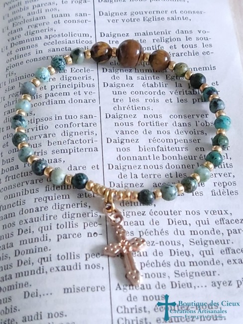 Bracelet chrétien en turquoise et oeil de tigre