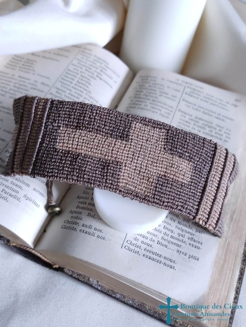 Bracelet / manchette Croix en tissage micro macramé