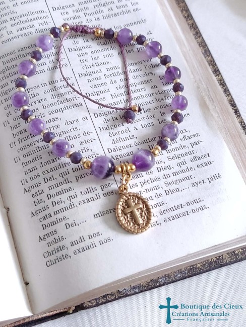 Bracelet Chrétien pour femme Améthyste naturelle Médaille dorée