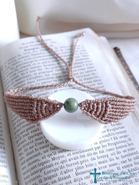 Bracelet tissage macramé ailes d'Anges - Jade vert