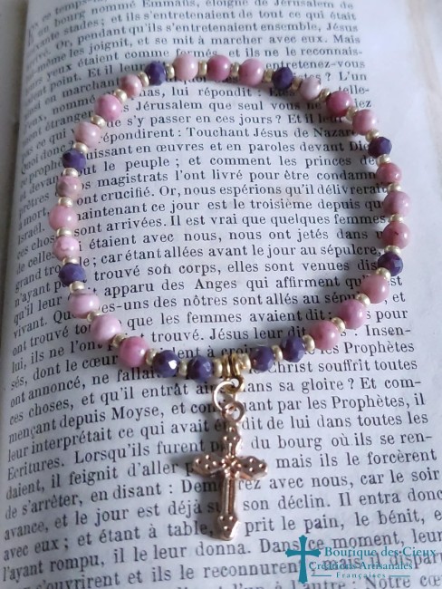 Bracelet en rhodonite et croix doré rose